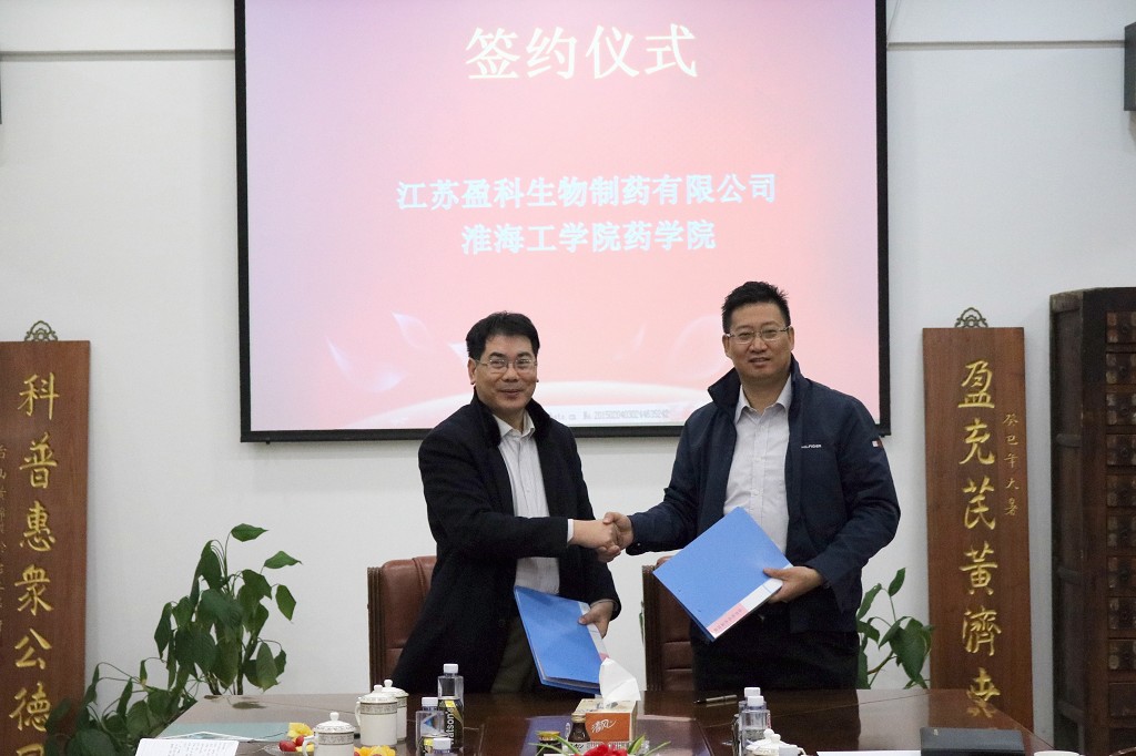 李树安一行首先来到江苏盈科生物制药有限公司,与杰出员工、公司董事长李海以及研发、生产、质量管理等部门的高管进行了座谈。宾主双方相互介绍了各自单位的发展历程、现状和美好愿景,并就深化人才培养和产教学研合作展开了深度探讨,达成了下一步合作的战略协议。李树安书记和李海董事分别代表双方在产学研全面合作协议、“3+1”人才培养模式改革合作协议、“盈科励志奖学金”设立协议上签字。随后,李树安一行深入公司的生产车间、质量检验和研发部门参观考察,与现场的工程技术人员进行了深入交流和探讨。