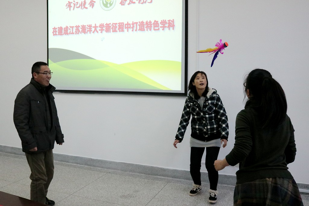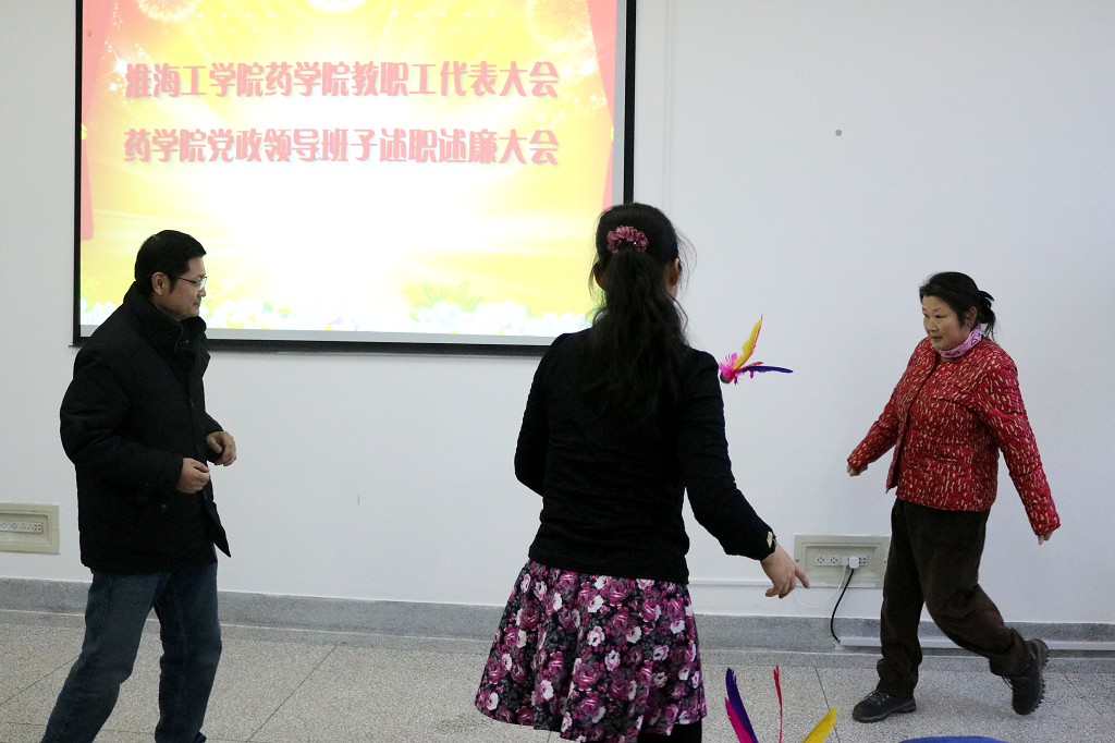 主题活动由经理助理兼工会分会主席李海南主持。全体教职工被分成三个小组,分别参加了“心有灵犀”、“彩毽飞扬”、“螺母塔建”、“新年心愿”等四个环节的欢乐比拼。特别是“心有灵犀”活动中,教职工用象声语言和形体表达演绎这每一个趣味词汇,其中不乏夸张和幽默诙谐的动作表演,把彼此的心灵默契表现的淋漓尽致,逗得现场笑语不断,气氛热烈;“螺母塔建”环节一分钟限时,参与者沉着冷静,耐心稳健的搭建每一个螺母,不时出现心急者半途而废,遗憾落败;“新年心愿”活动中,全体老师纷纷表达着对学校、对学院、对自己的美好祝愿:“有事做、有人爱、有所期待”、“BBIN宝盈集团越来越好,BBIN宝盈集团创建成功”、“2篇SCI”、“中国家基金项目”、“涨工资20%”、“平安健康”……