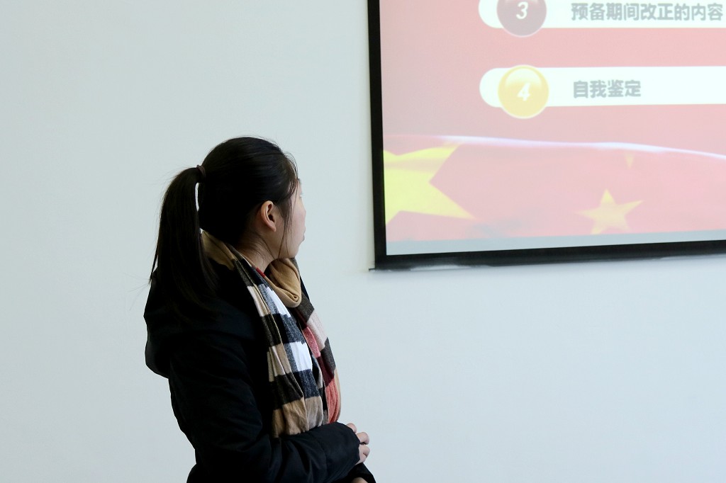 答辩会上,杨迎晨等7名预备党员首先汇报了自己在预备期的政治理论学习体会和学习、工作、生活表现情况,介绍了取得的成绩以及目前存在的缺点和不足,明确了今后的努力方向,然后随机抽取2道题目现场作答。本次答辩会最后一个环节是无领导小组讨论,讨论题目紧紧围绕党的十九大精神和新党章的要求进行了材料设计,7名预备党员围坐在一起,着重就全面从严治党管党新形势下党的建设要求展开讨论。经过近半小时的充分交流,大家对习近平新时代中国特色社会主义思想、加强党对一切工作的领导以及如何转变作风并发挥好党员的先锋模范作用、做“四讲四有”合格党员有了更清晰的认识。